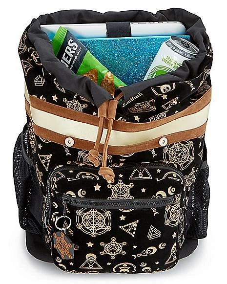 Got your head in the clouds? ThisΒ Black Celestial Rucksack Backpack is adorned with astronomical symbols to create a design that’s out of this world. Snap and drawstring access to the main compartment makes for quick and easy access to your valuables, and zipper closure compartments keep your extra precious things secure!Β