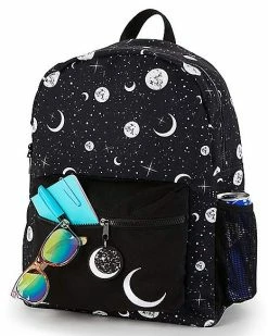 Add some celestial vibes to your back to school look with ease with this Celestial Print Backpack. All your back to school essentials will always stay safe and secure when you store them in this handy backpack that features an outside front zip pocket and side water bottle pocket.