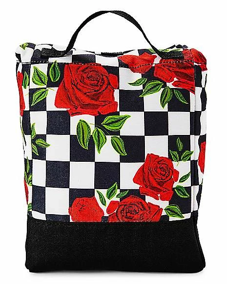 Bring along a lunch with you anywhere you go when you buy this Checkered Rose Lunch Box. This checkered rose lunch box is a great gift for someone who is always on the move.ย