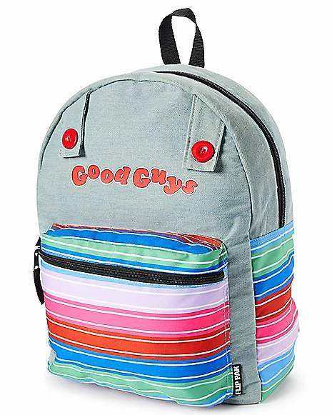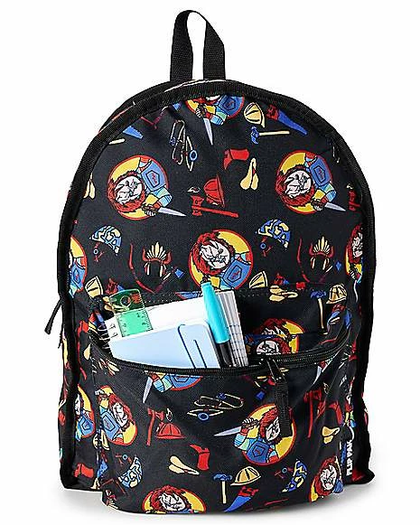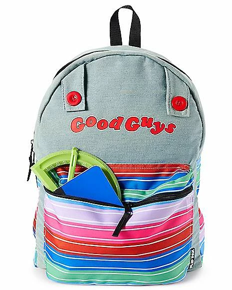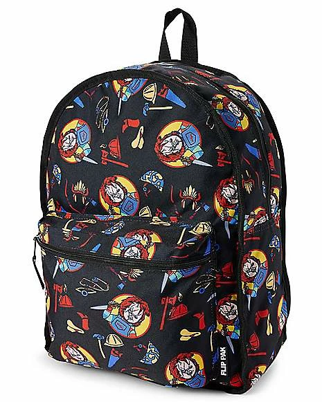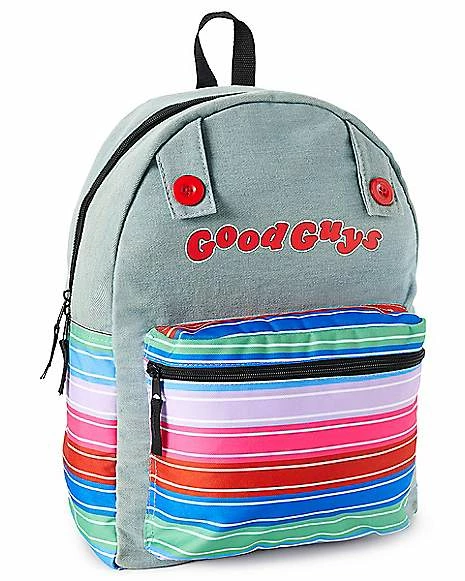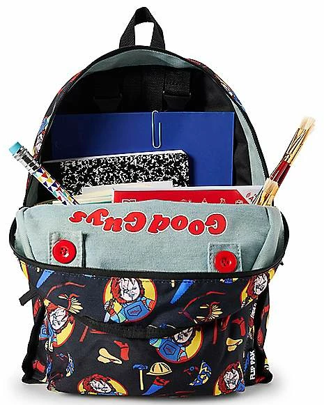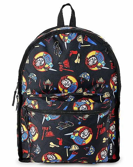Wanna play? Add some slasher style to your wardrobe with this Chucky Good Guys Reversible Backpack! This killer backpack features everyone’s favorite fun-sized horror icon, Chucky, and a reversible design so you can choose which look you want to sport depending on the day! Take on the day with Chucky by your side with this terrifyingly cool backpack.