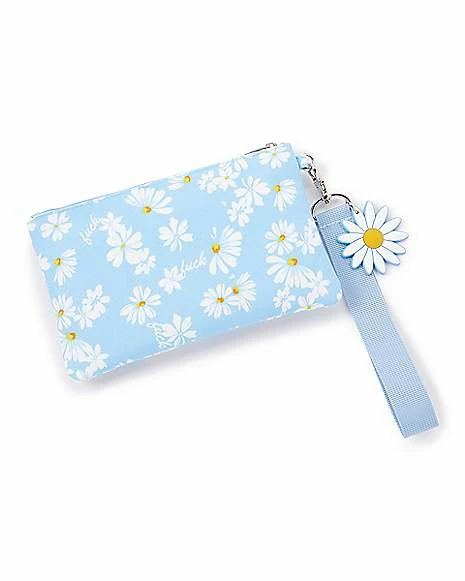 Make yourself smile whenever you reach for a pen or pencil with this fun blue and white daisy fuck wristlet. This stylish pouch with a wrist strap is a totally convenient way to carry your essentials to school or work.