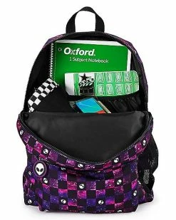 Take your backpack game to a new galaxy with this alien checkered backpack! Your style will be out of this world (pun intended.) With two zipper pockets, one internal laptop sleeve, and one mesh water bottle pocket, there’s no doubt you’ll be able to bring all of your essentials with you wherever you go!