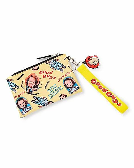 Store your daily essentials and show off your love of horror movies with this official Good Guys Chucky Wristlet! This convenient pouch includes a detachable wrist strap so you can carry it on your wrist or put it in your bag. Bring your keys, ID, cash, credit cards and any other small items with you wherever you go with this fun wristlet any horror fan will adore.
