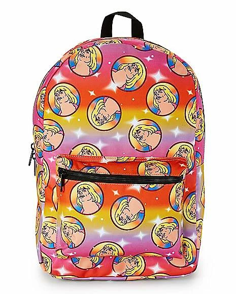 Celebrate a pop culture classic with this He-Man backpack featuring He-Man against a sparkling rainbow backdrop. Everyone will be picturing He-Man singing when you walk the halls with this sturdy backpack, which has plenty of space for all your belongings. With its roomy main compartment and front zipper pocket, you’ll be prepared for school and afterward every day.