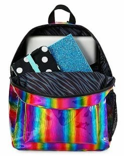 Who says backpacks have to be boring? ThisΒ Iridescent Rainbow Backpack is as fun as it gets! Featuring lots of room for your stuff, a secure zipper closure, and a surprise interior zebra print, this backpack has everything you need to get organized in style.