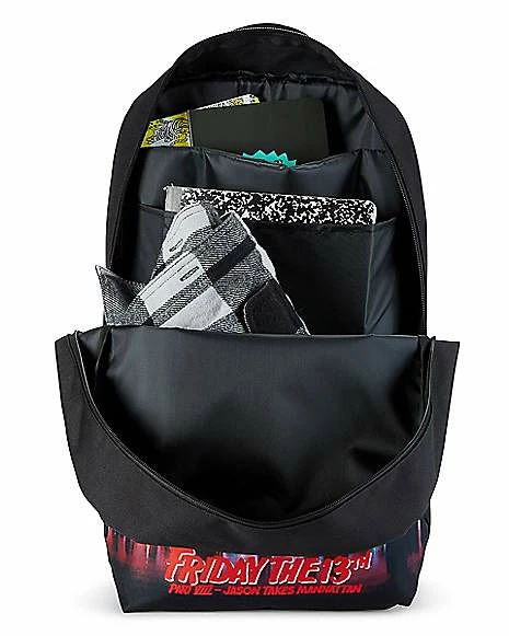 Friday The 13th fans will go wild for this killer backpack! This officially licensed Jason Takes Manhattan Backpack will let everyone know who your favorite horror villain is. The bag is designed to look like a movie poster! With a large zipper pocket, a front pocket, and a laptop pocket, you’ll have everything you need to get through the day.