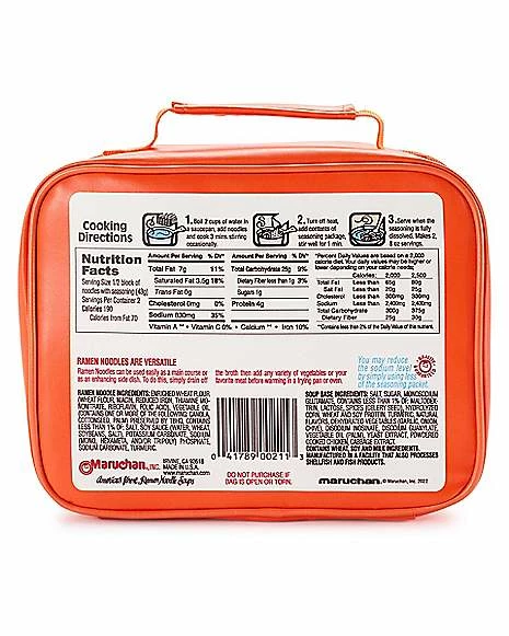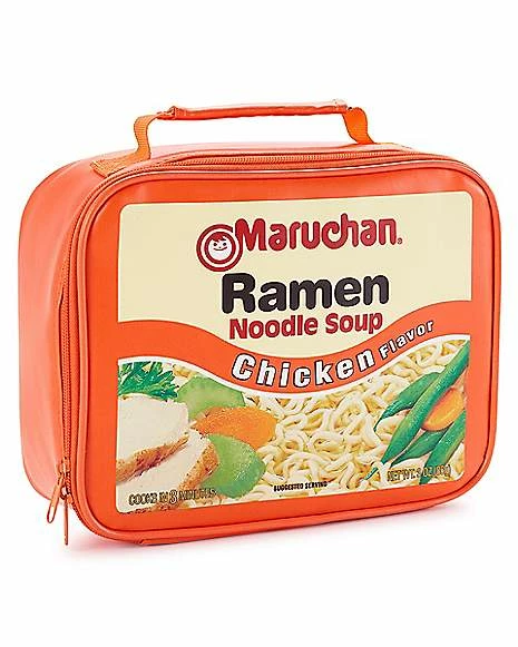 Get ready to slurp on some of your favorite noodles everyday for lunch when you get yourself this Maruchan Chicken Flavor Ramen Lunch Box. This hilarious lunch box looks just like a pack of unopened ramen noodles with nutrition facts and all on the back. Bring this lunch box with you to school, work, or on the road and everyone will know you love yourself some ramen noodles.Β