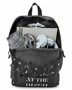 Show off your fandom for your favorite band when you show up to class rocking this officially licensed Panic! At The Disco Backpack. This backpack is the ideal bag to hold your most important items, featuring an outside zip pocket and internal laptop sleeve, you’ll always have plenty of carrying space while showing support for your favorite band.Β