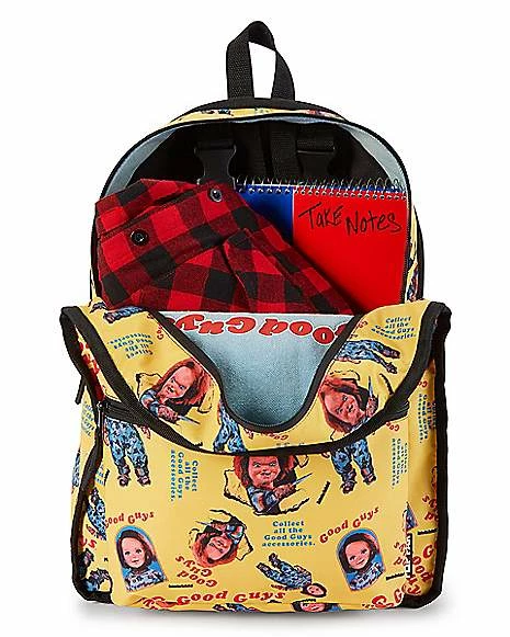 If you’re someone that can’t go a single day without changing up your style, we’ve got the perfect backpack for you! This officially licensed Good Guys Chucky Backpack is reversible, with two epic designs that feature images of the classic horror villain. With a large zipper pocket and a front pocket, you can’t go wrong with this awesome bag.