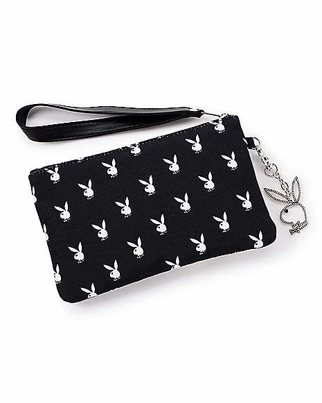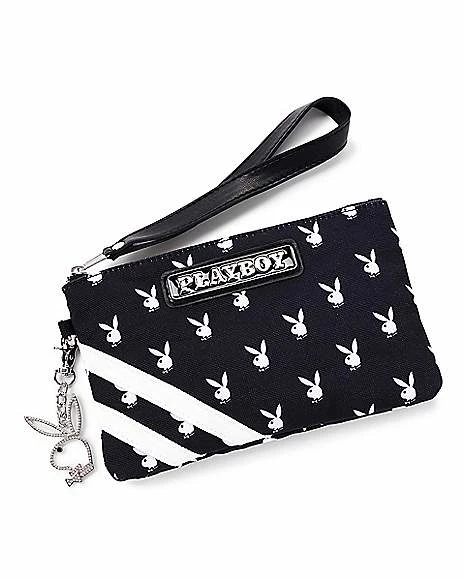 Rep one of your favorite images with this stripe Playboy wristlet! With its Playboy bunny charm and wrist strap, this pouch makes it easy to always have essentials like a pen, keys and other small items handy.