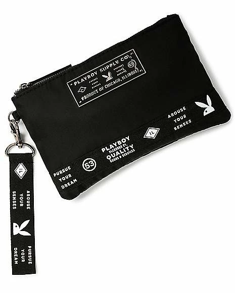 Show you’re all about the Playboy brand wherever you go when you accessorize with this Taped Playboy Wristlet. This stylish black Playboy wristlet is the perfect way to carry all your small essentials to school or when you’re out and about.